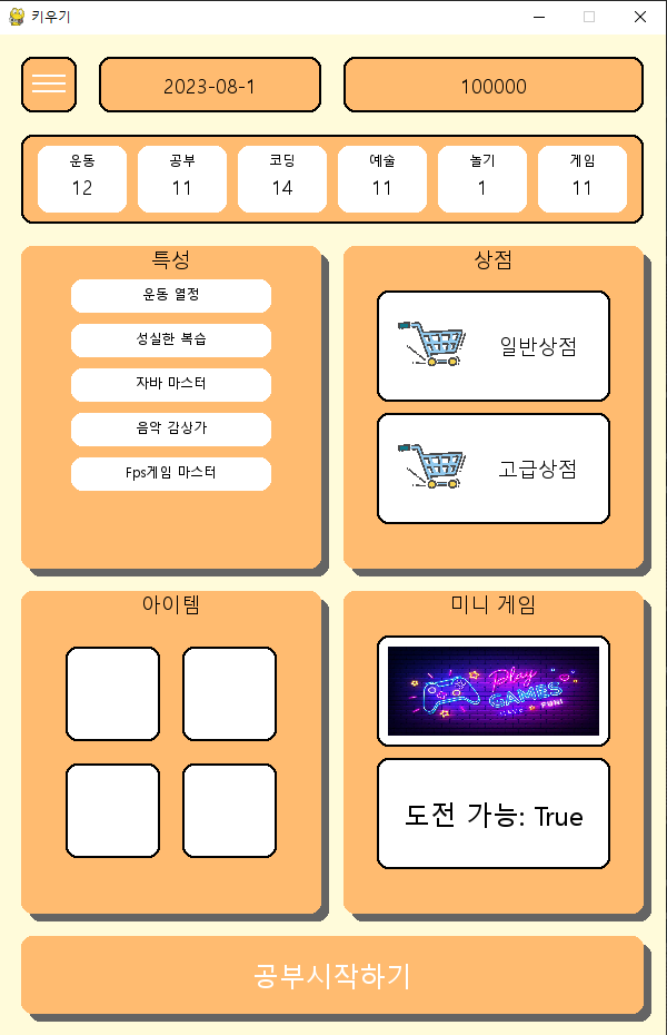 특성, 기록, 업적등 다양한 기능이 구현되어 있으며 무려 소리도난다