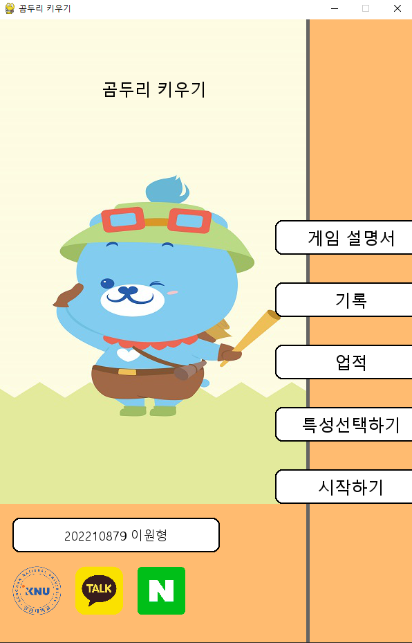 플레이어가 곰두리라고 생각하고 만든게임이다.